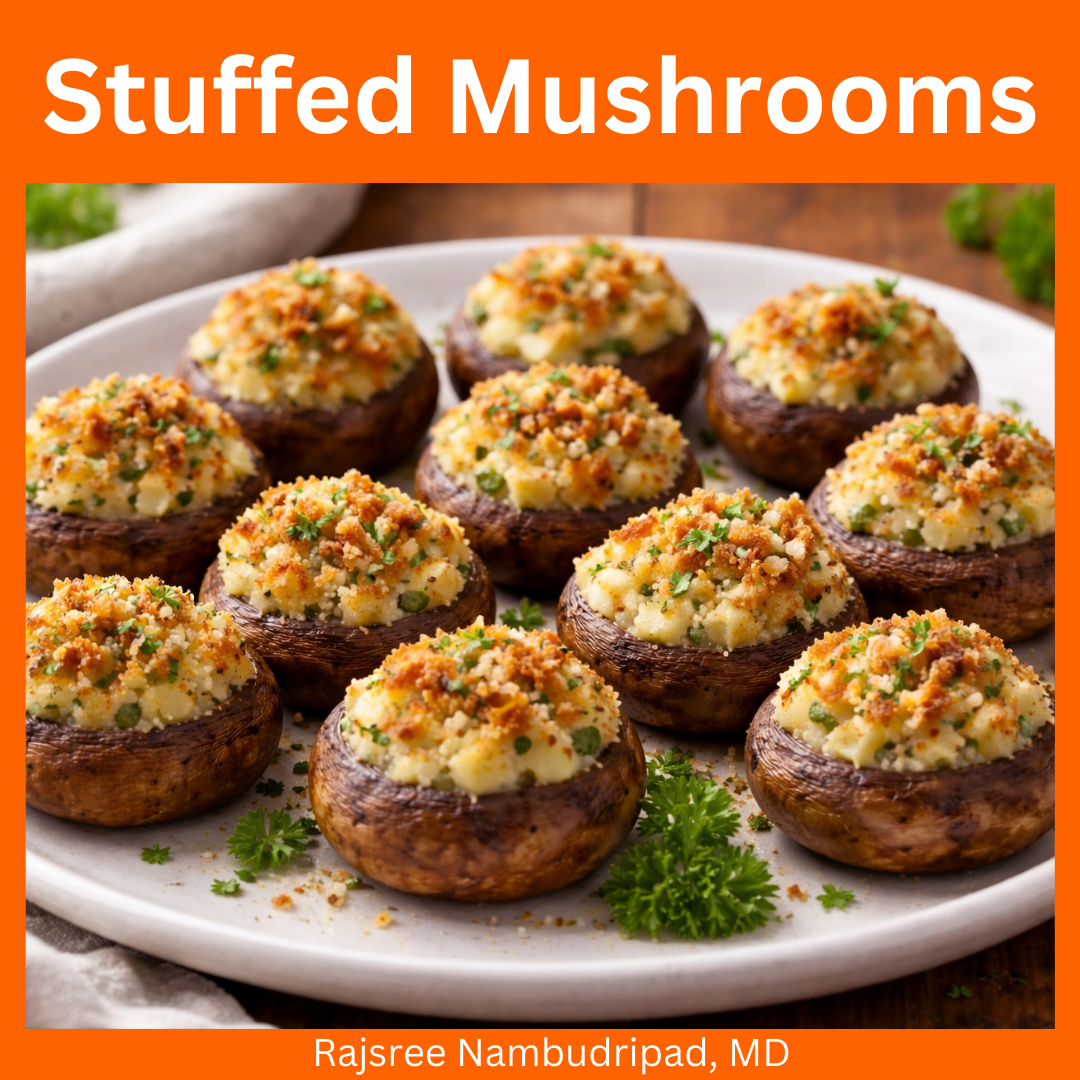 These bite-size stuffed mushrooms are a nutrient-dense, savory delicacy, perfect for a dinner party or a relaxed family night. Mushrooms are an excellent source of beta-glucan fiber, which supports the gut microbiome and a healthy immune system. Walnuts, celery, and herbs create a savory, satisfying bite.